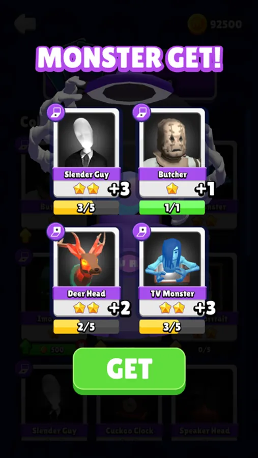 Collect card pieces and level up to strengthen your monster!