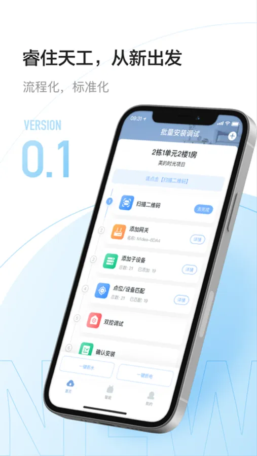 睿住天工APP是一款智能家居批量交付业务进行调试安装的软件,通过建立规范化流程和标准化操作,提升调试效率