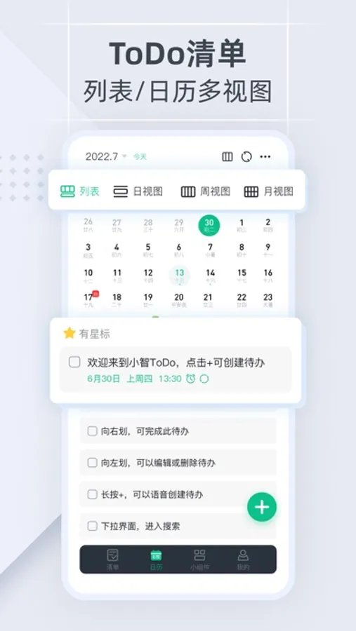 小智ToDo集日程清单、日历、计划表、备忘录、便签、闹钟、自定义提醒、自定义重复、桌面小组件等多种实用功能于一体,专注量化待办清单(Todo) 、日程管理(GTD) 和事项提醒,是你高效办公、目标管理、习惯养成及便捷生活的贴心智能助手。