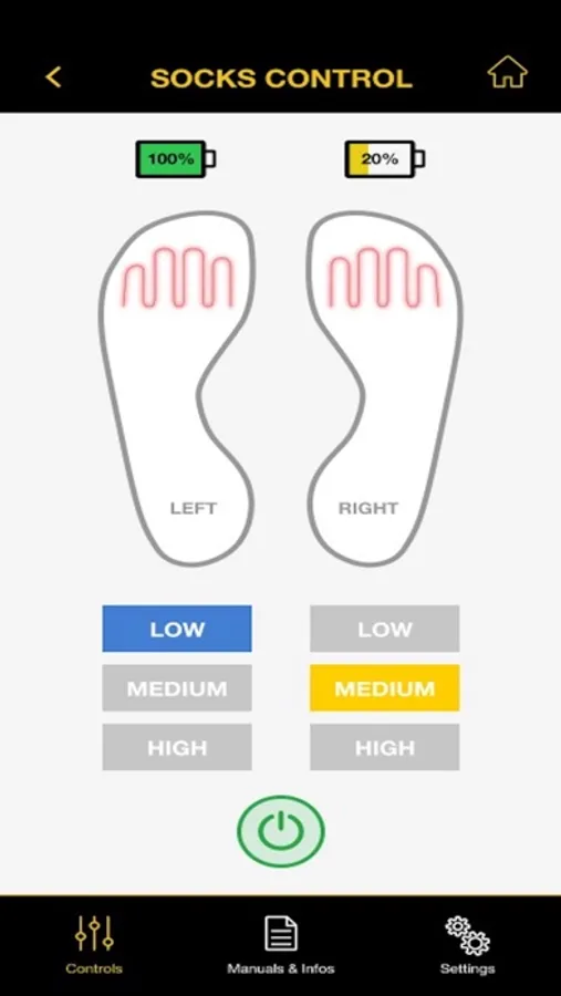 Bluetooth functionality of your mobile device. You will be able to easily control your heated socks since it offers the possibility of 3 heating levels, a standby mode, a clear visual of the battery status, as well as the possibility to customize the name of your batteries
