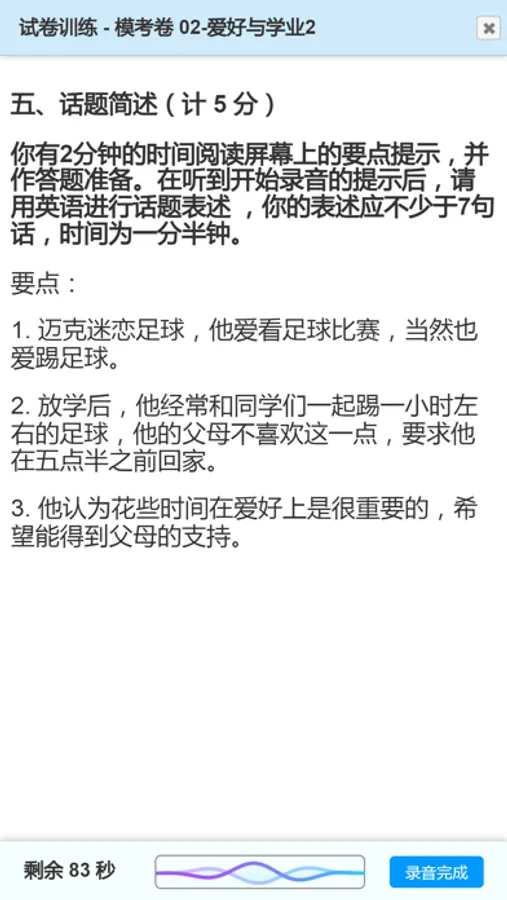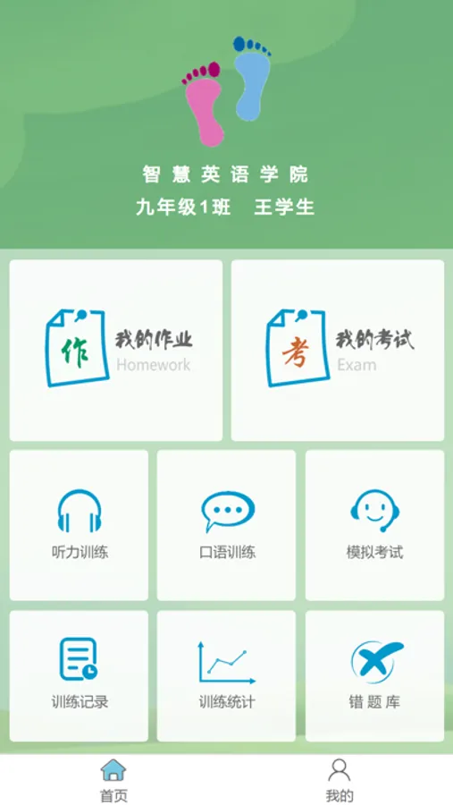 ”智慧满分宝“主要包含听力训练、口语训练、模拟考试、作业系统、训练记录、训练统计、错题库等功能。其中听力训练、口语训练、模拟考试用于学生自主训练,作业系统用于接收并完成老师布置的作业,训练记录、训练统计、错题库用于查看和统计所有自主训练的内容。