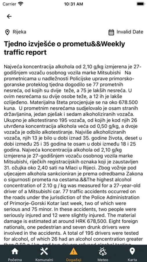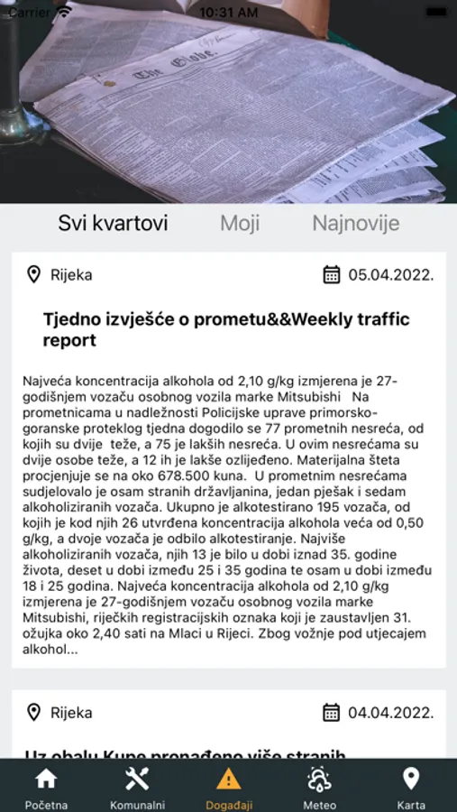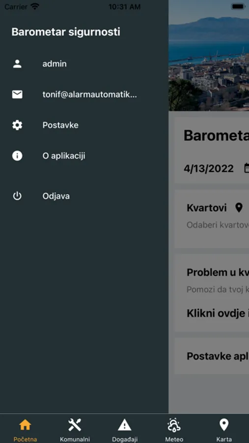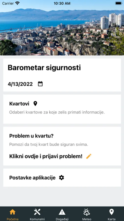 Application for monitoring security parameters. The application collects, processes and displays information on various events that affect the safety and quality of life of citizens: crime, difficulties in traffic and parking, air quality and other environmental indicators and the functioning of water, electricity and gas . The presented data serve citizens and visitors to choose safer and faster directions of movement, and city services to establish the right places to raise the level of security.