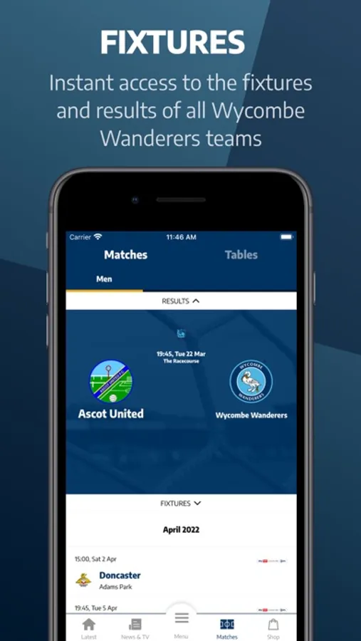 - Fixtures & Results: Use the app to keep up to date with upcoming matches and recent results.