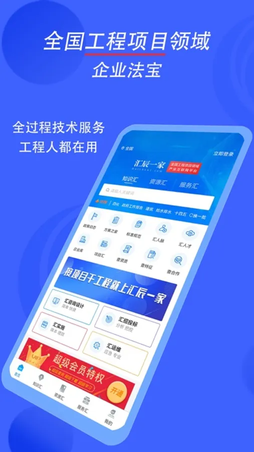 汇辰一家是一款工程项目领域的信息技术综合服务平台,集全国招投标信息综合查询、工程行业资讯综合查询、企业商业信息查询、工程行业供需互联为一体的大型垂直性综合服务平台。依托数字化技术,提供三大价值服务,即知识汇、资源汇、服务汇。