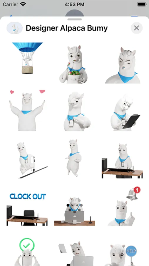 "Designer Alpaca Bumy" is an emoticon with an alpaca character concept working in the design industry.