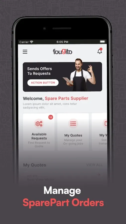 Fougito Automobile App is created to meet garage owners with spare part dealers, where garage owners can create a request for its required spare parts and spare part dealers can sent their quote of new and used part on the request. It is easy Easy-To-Go App with convenient navigation to a sleek and intuitive interface for a fantastic experience.