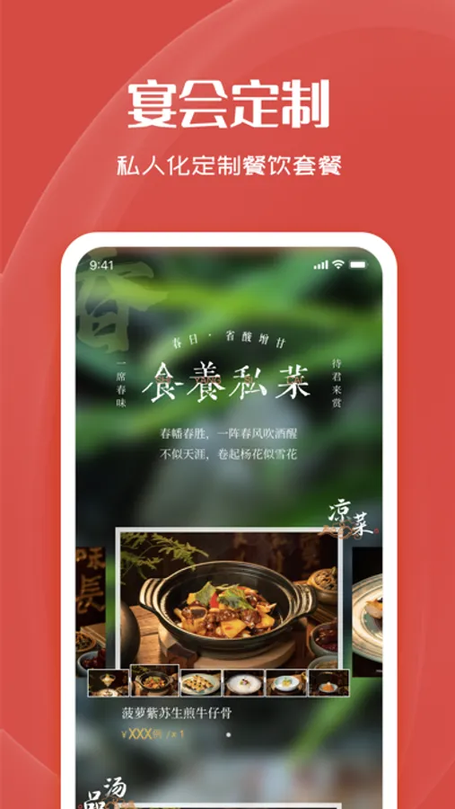 【定制宴席】线上预定定制化餐食,可根据自身的喜好及忌口,为每位顾客独立定制餐食,并在线生成定制化菜单。