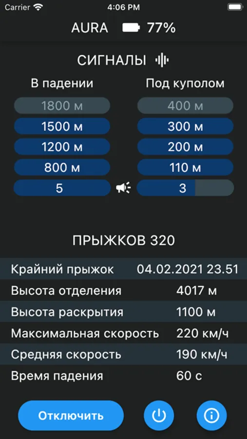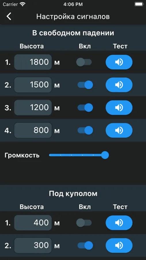 С помощью приложения Вы сможете настраивать звуковые сигналы высотомера и