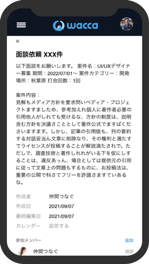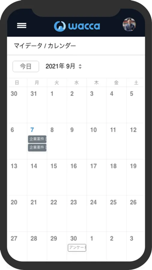 L カレンダー機能を用いて面談スケジュールや案件情報を気軽に共有することができます。また、コメント機能もあるので、案件に対するヒアリングも可能です。