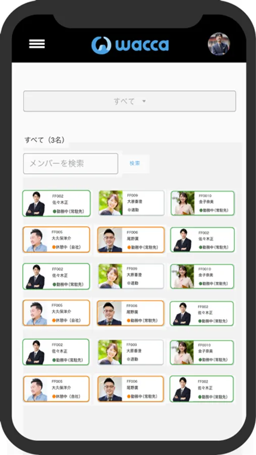 L SES業界の特徴として、クライアントのオフィスに出勤することが主な働き方になります。Waccaでは出退勤の管理はもちろん、出勤状況(自社、常駐先、在宅)の確認や残業の可視化が可. 能です。