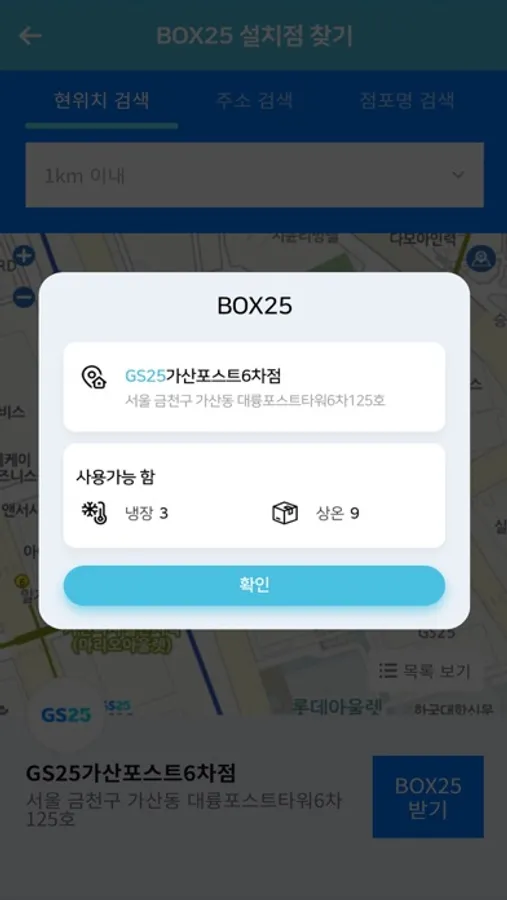 - BOX25에 보관된 GS네트웍스 제휴 쇼핑몰의 물품 픽업, 반값택배 픽업이 가능합니다.