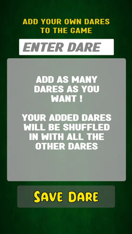 The Game Contains : Dare Cards , Truth Cards , Ultimate Cards and even Weird Cards. The Card drawn will give you a task to do and if you refuse you will need to face the consequences.