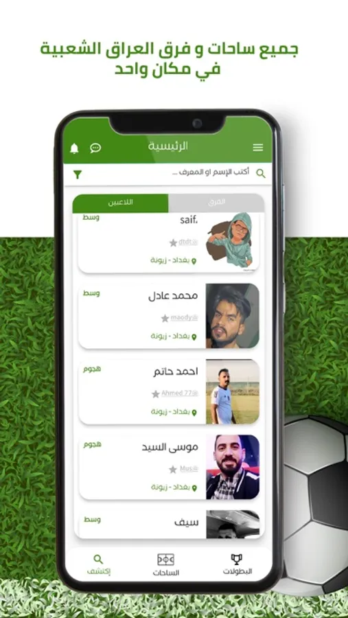 ويوفر لك فرصة التعرف على المجتمع الرياضي في منطقتك ومدينتك، كما يمكّنك من الاحتفاظ بسجل انجازاتك (الاهداف وسجل المباريات والمشاركات بالبطولات وغيرها..).