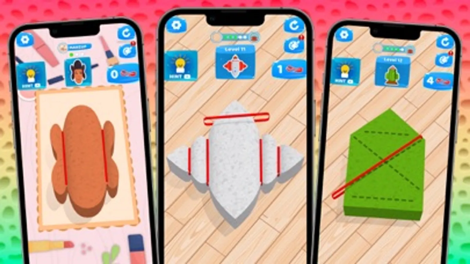Each level has a different cool shape to design. Simply cross the string from side to side and squeeze out the desired shape!