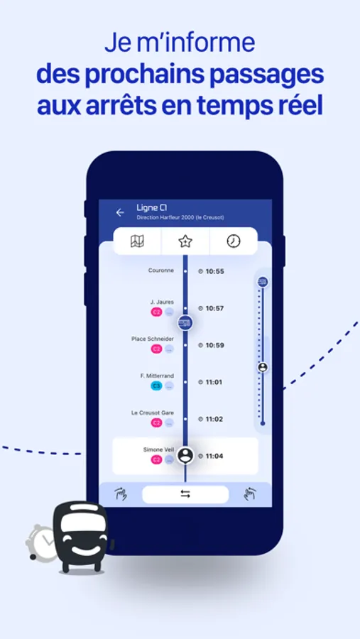 Vous géolocaliser pour consulter les horaires de l’arrêt le plus proche et le prochain passage du bus en temps réel