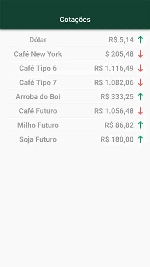 Aplicativo para mostrar a cotação dos principais produtos do agro negócio