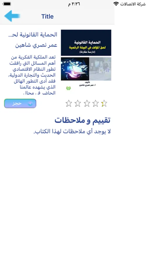 من خلال التطبيق يمكنك البحث عن كتاب معين بطريقتين؛ إما عبر كتابة اسم الكاتب أو عنوان الكتاب.