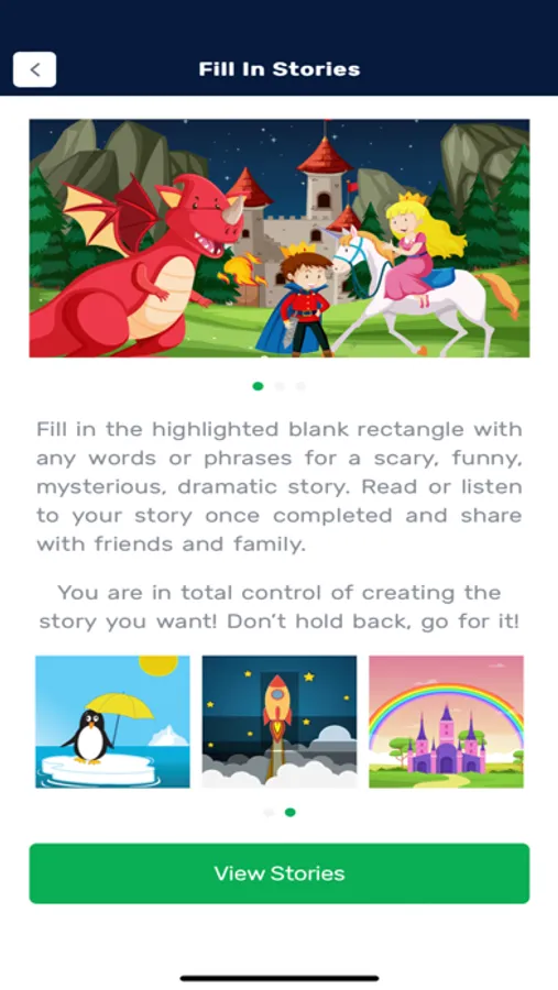 Kids can choose from tons of fill in stories to fill in and have a laugh. They can also create their own stories and listen to them when they are done. When kids write and fill in stories, it exercises the brain using imagination which can play a huge role in child development. Using the imagination helps strengthen each region of the brain and improves performance as well as problem solving skills and social development.