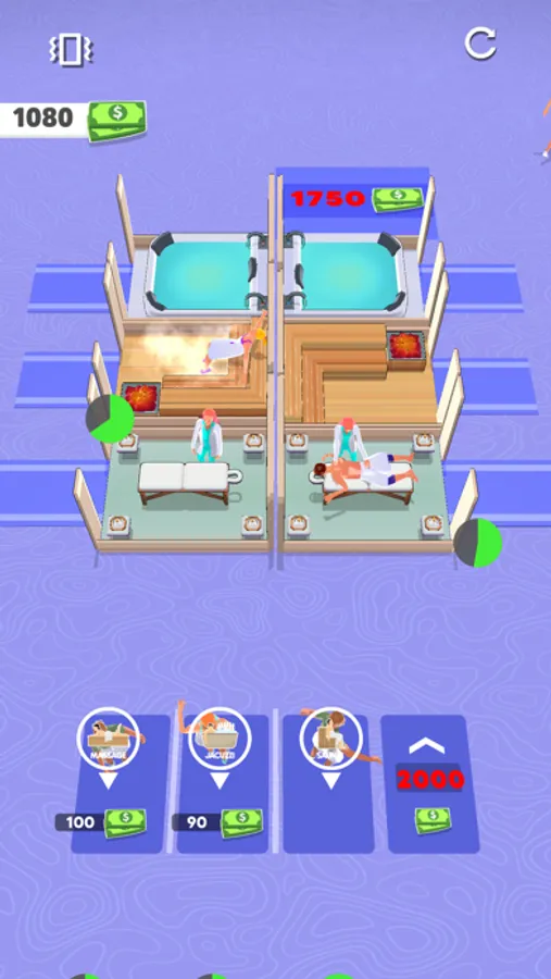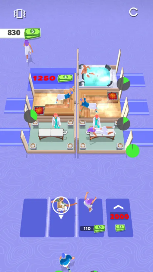 Take incoming customers to relax in appropriate places in this game. Improve your customer capacity and Relax Center with the money you earn.