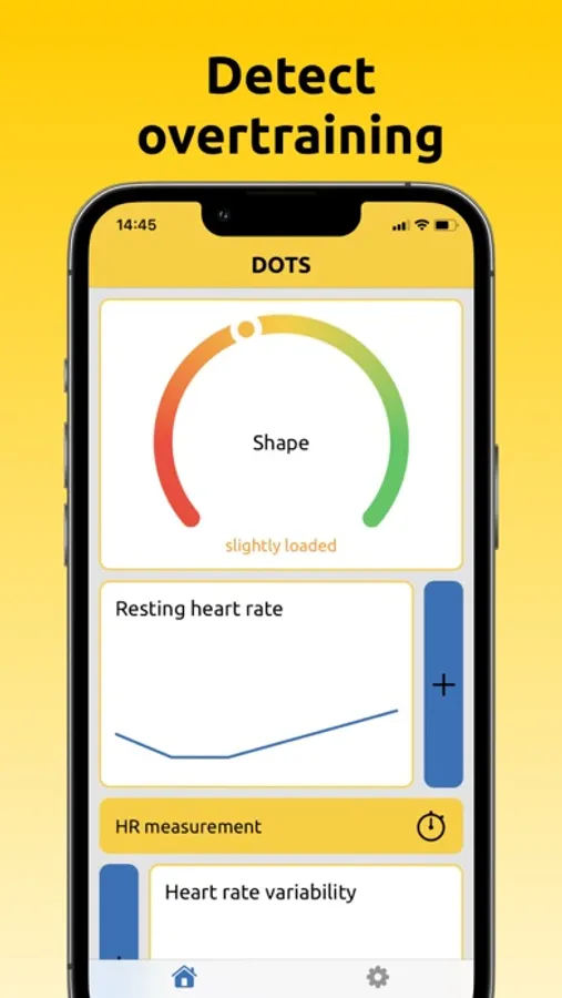 The DOTS app displays a shape. The displayed diagnosis should be compared with the current training load. The DOTS app can help to detect a possible overreaching at an early stage.