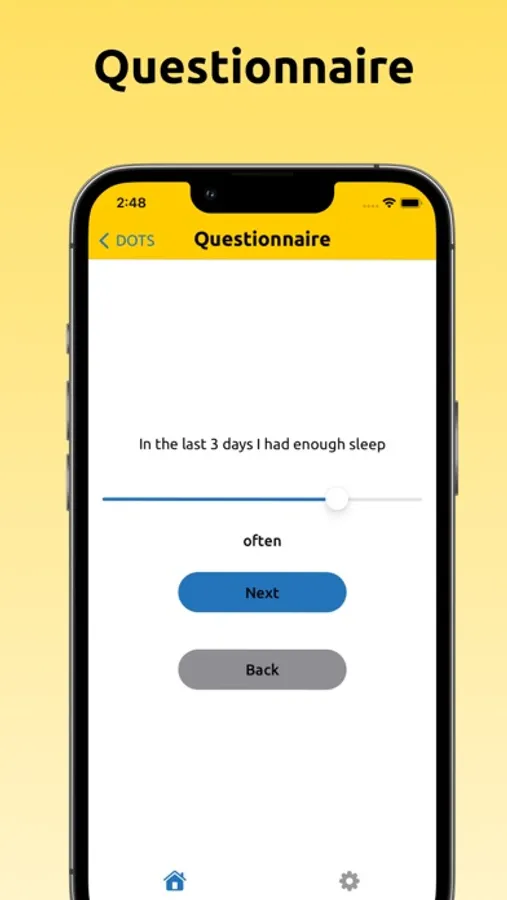 A psychometric questionnaire with 6 questions has to be filled out every three days.