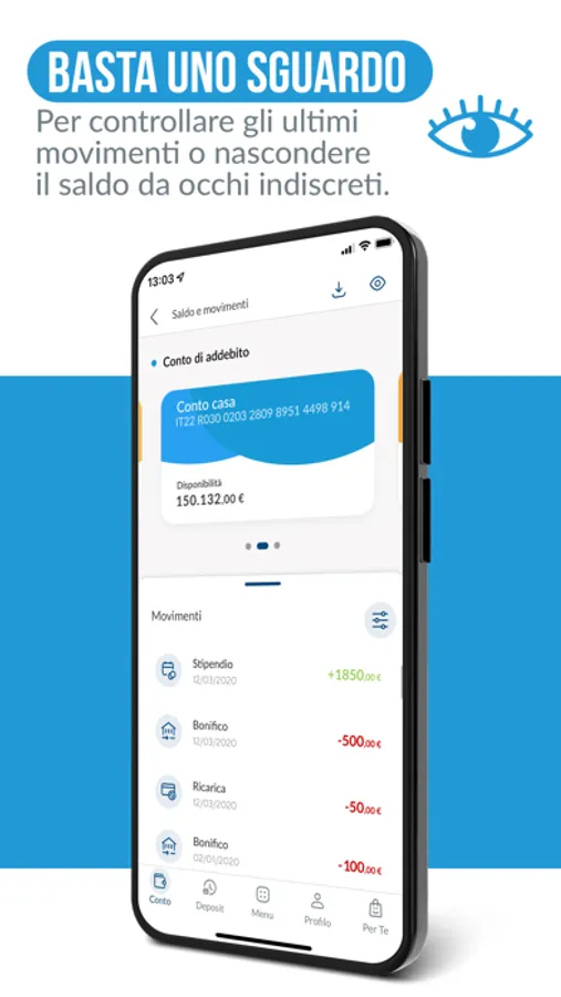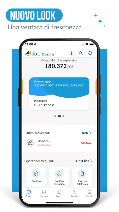 La nuova IBL E-Bank mette al primo posto la facilità d’uso, per agevolarti nel consultare il conto e compiere operazioni in pochi tap!