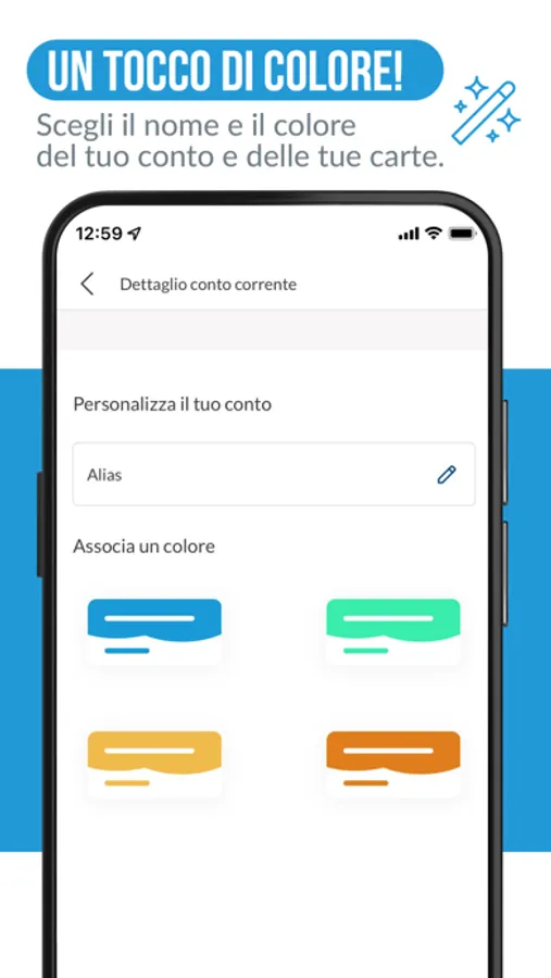 • associa i tuoi colori preferiti ai conti e alle carte per renderli ancora più riconoscibili, a colpo d’occhio