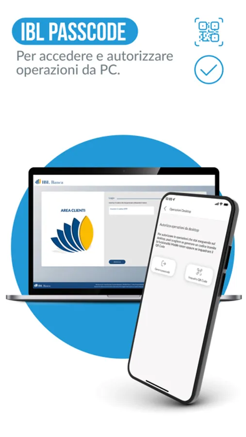 • autorizzi facilmente le operazioni che compi con l’Home Banking da desktop (puoi farlo con il Mobile Token che genera codici OTP o inquadrando il QR Code)