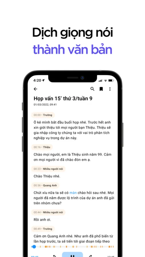 • Ghi âm và dịch giọng nói sang văn bản tức thì