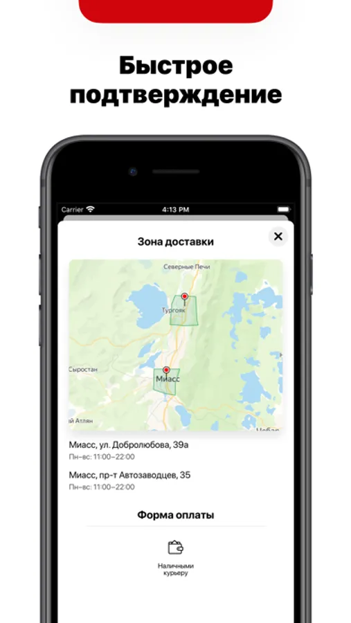 — Быстрый заказ с мгновенным подтверждением через приложение.