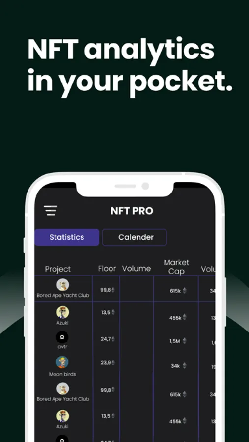 Discover NFT projects which have the potential to go the moon.NFT PRO provides you with valuable data & context to help you make data-driven decision and see if a project is about to go to the moon. With NFT PRO you can see the upcoming&trending projects, track floor price changes, volumes and before anyone else & see the opportunities in advance. NFT Pro will help you become a professional nft & web3 investor.