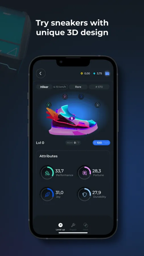 AMAZY is a challenging M2E fitness app with game-fi elements. Here you wear trendy NFT sneakers, take a walk or run and get in-game tokens. Each pair of sneakers has a unique 3D design and a certain level of rarity. Upgrade your pair: level up, improve performance, move and earn. AMAZY is building its realverse to inspire as many people as possible to start taking care of their health and stay fit in a simple and fun way.
