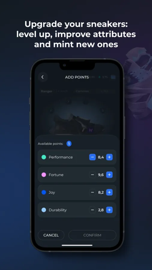 That means your chances of dropping rarer sneakers from the mint have doubled. Don't miss the opportunity to get Rare sneakers and earn even more AMT. You'll find details on the odds of getting rarer sneakers in the WhitePaper on our website. We're also extending the period of increased AMT income: for each unit of energy, you'll get 1.5 times more tokens. A little more information about the chips: boxes with them will appear in one of the AMAZY app updates around November 2022. This means you have time now to upgrade your pair and get ready for the new milestone.