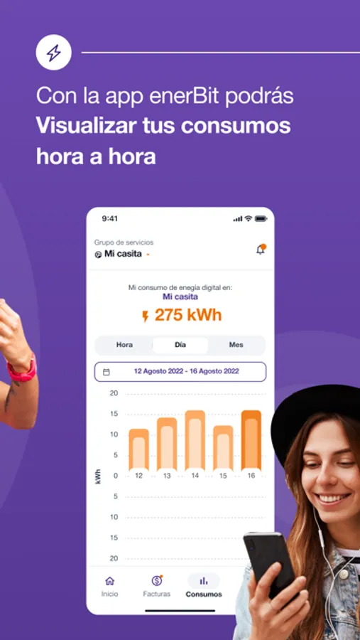 En enerBit apostamos todo a revolucionar el acceso a la energía, de una manera 100% digital, amigable con el medio ambiente y muy simple para nuestros clientes. A través de esta app podrás tomar el control de tu energía, consultar tus consumos en línea, configurar notificaciones y alertas, evidenciar tus ahorros, acceder a estimaciones de facturación y muchas funcionalidades más que estamos diseñando para modernizar la forma en que interactúas con la energía.