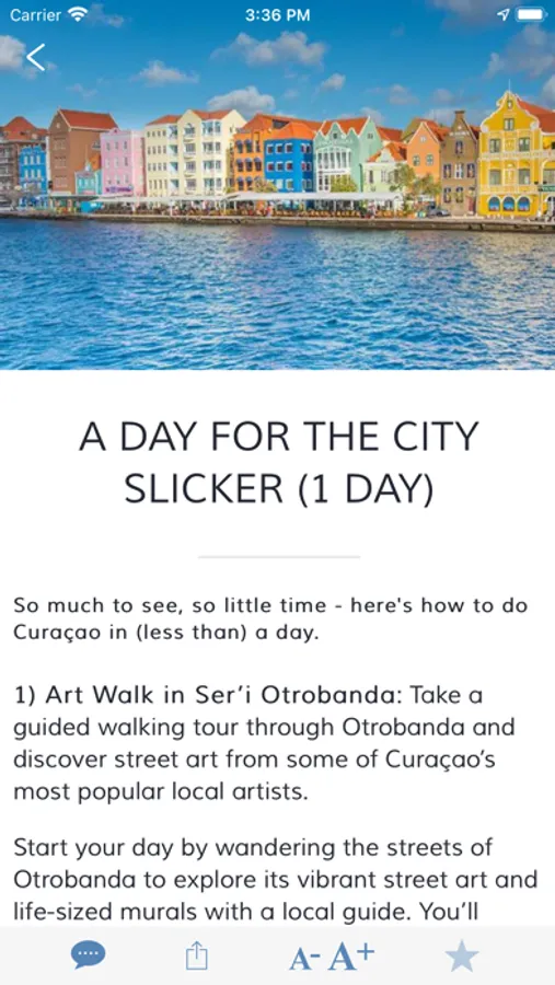 Curaçao is an island ready to be explored and enjoyed. And with the help of the Curaçao Travel Guide App you can do just that. Details ranging from where to stay and what to do, to important travel advisory information and ready to go itineraries are all included and just a tap away. This southern Caribbean getaway boasts incredible experiences and having the Travel Guide app handy is your way to fully explore this one-of-a-kind island and get the best out of your stay.