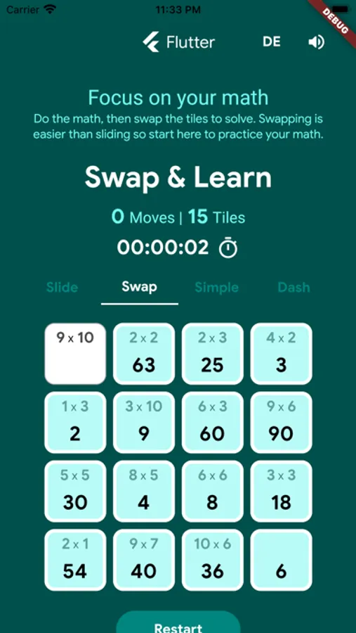 Learn your multiplication tables, practise your sums, try your hand on roman numbers, or switch to a different base system if you like the challenge.