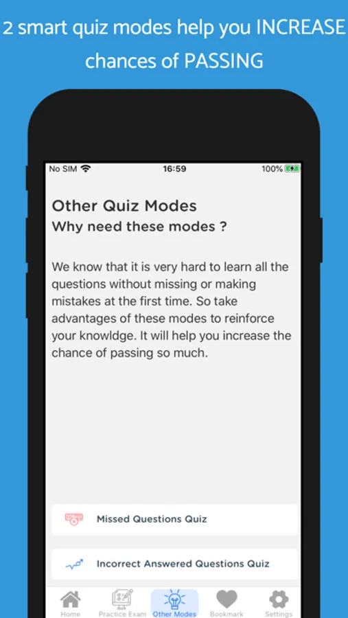 4.Examination mode will help you take test like a real exam. So you will be more confident.