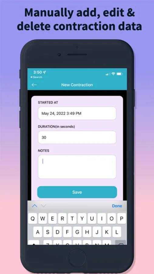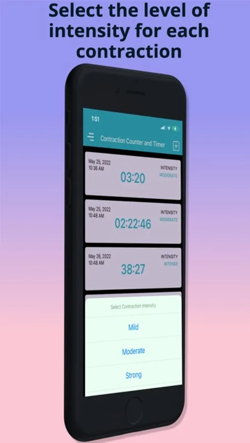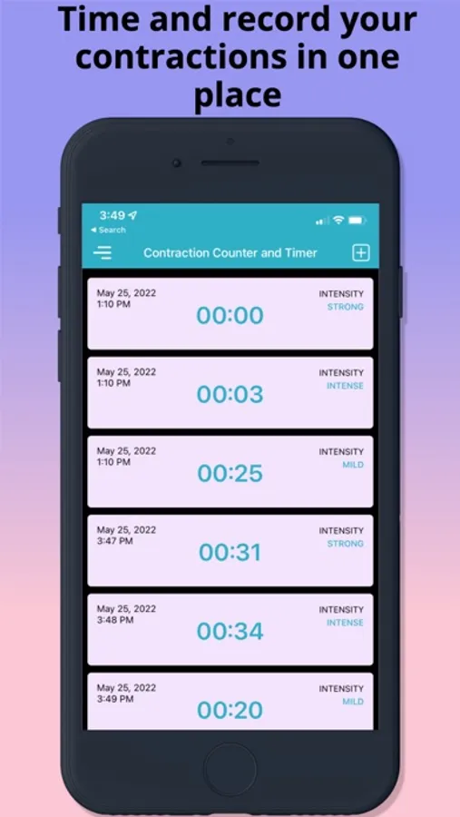 In addition to timing your contractions, you can even add or delete contractions manually and select the level of intensity of each contraction. This will help you compare the level of intensity of the contractions.