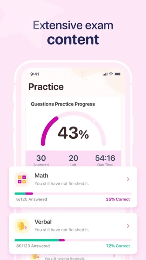 In GRE Exam Prep 2023, there are a large number of questions prepared by test experts that cover the range of official test requirements. Depending on the exam requirements, you will need to master a number of subjects including verbal reasoning, quantitative reasoning, analytical writing, and critical thinking skills. You have the flexibility to choose which subjects you need to practice, depending on your situation.