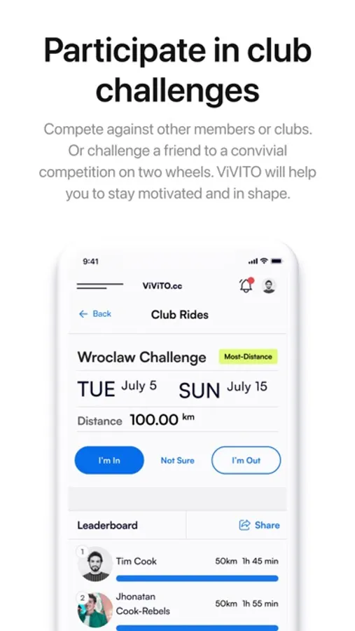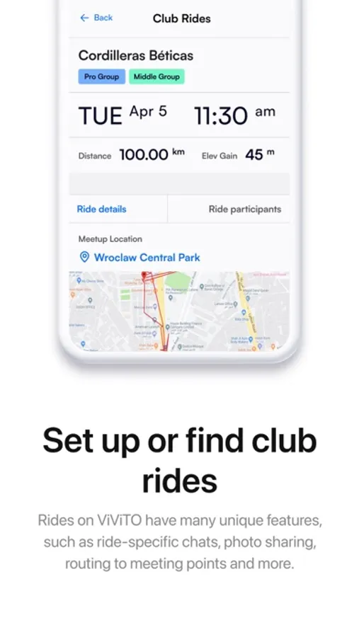 - Ride communication: each ride set up on ViViTO automatically creates a chat group for that ride only.