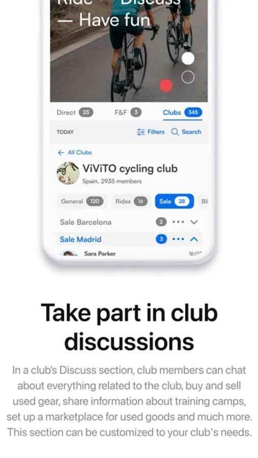 - Set-up subgroups / sections for different activities (MTB, gravel, road, triathlon, age group, sex etc.) to target communication, rides and challenges