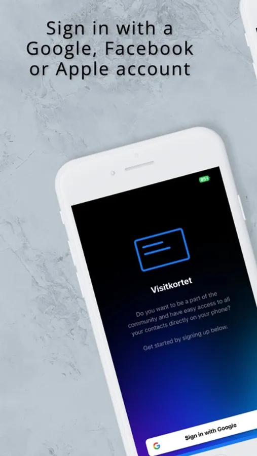 You can easily get started with Visitkortet, simply download the app and log in with a Google, Facebook or Apple account. This also means that, if you are waiting for business cards to be printed and sent, you can get started sharing the business card immediately. Which can be a springboard to get a customer or contact already now.
