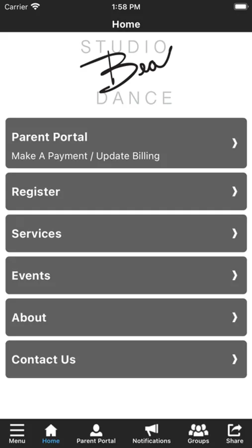The Studio Bea Dance app allows you to manage your account with ease, register for classes, parties, and special events. You'll also receive important notifications about class changes, closings, registration openings, special announcements, and upcoming events.