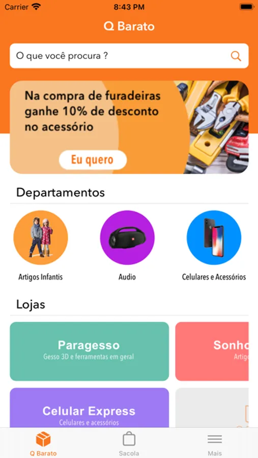 O app Q Barato foi feito para você que gosta de aproveitar muitas ofertas com total conforto e segurança. Aqui, fazer compras online é muito fácil. Temos tudo para você e para sua casa. Móveis, eletrodomésticos, eletroportáteis, TVs, smartphones, produtos de decoração, cozinha e limpeza, o que você pensar, vai encontrar aqui.