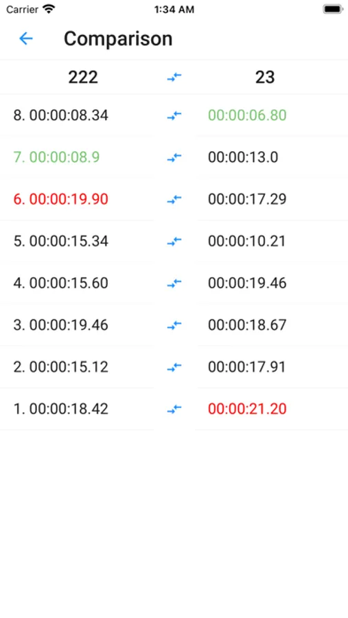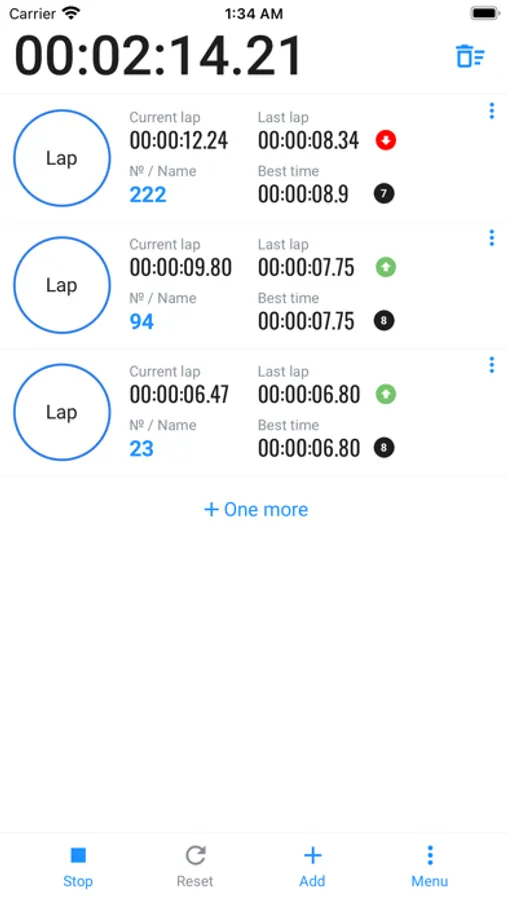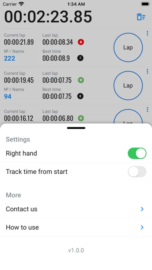 - Allows you to view the results of all laps and compare the achievements of several participants