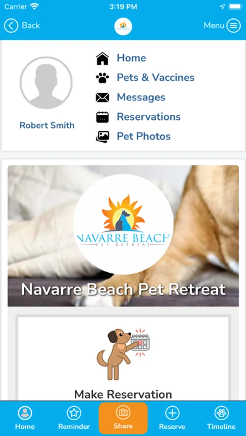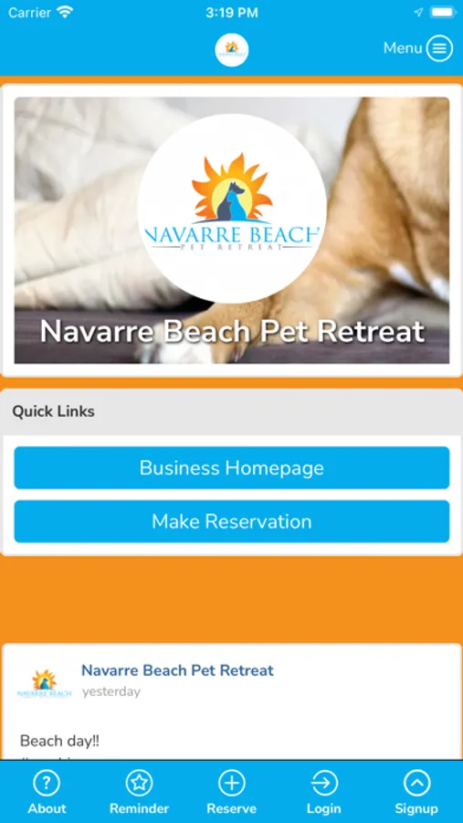 The Navarre Beach Pet Retreat App enables users to make reservations, purchase package credits, see and pay invoices, message with Navarre Beach Pet Retreat, see photos of their pets, and more. Employees of Navarre Beach Pet Retreat are able to manage the business and connect with customers. This app is made specifically for the customers and employees of Navarre Beach Pet Retreat.