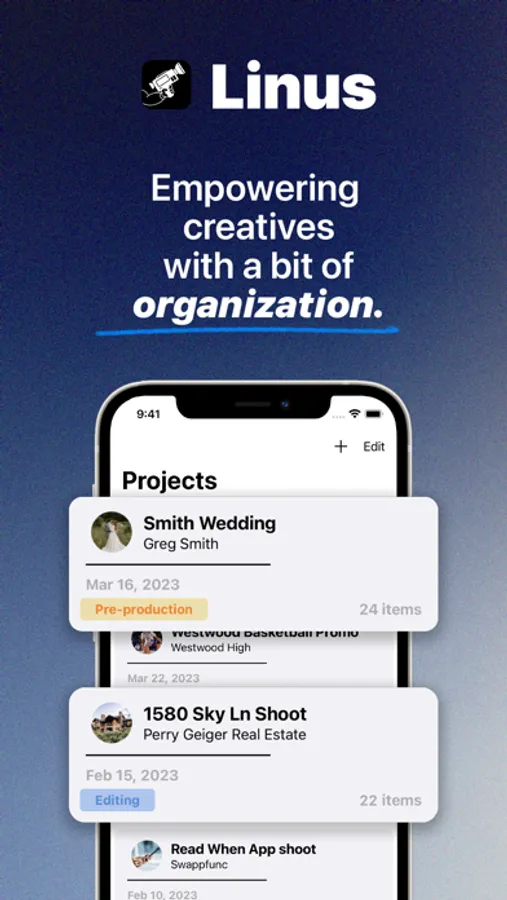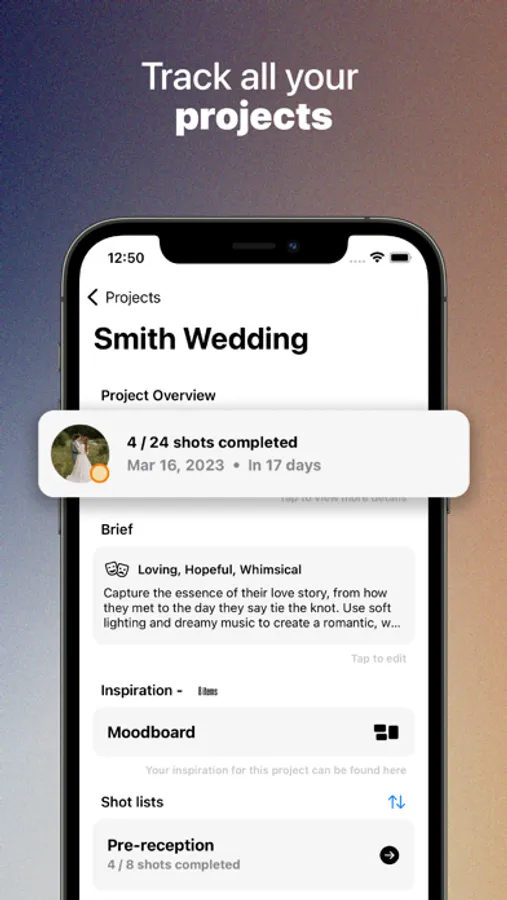 Plan and keep track of every detail of each of your current projects. Give them a status, due date, as well as assign moods to a project.