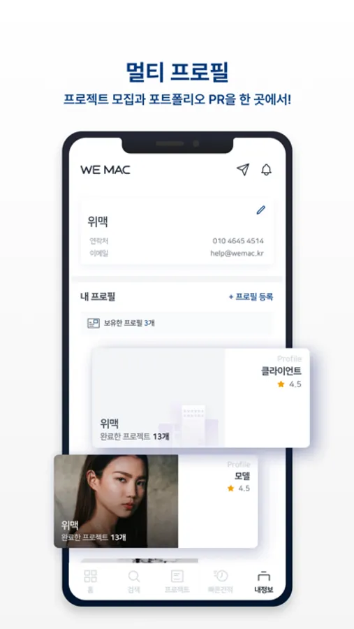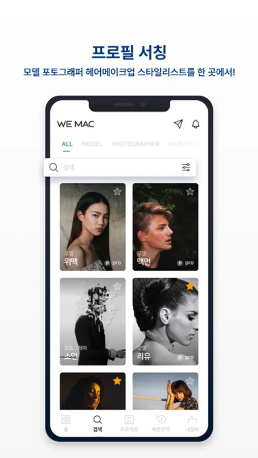 모델일 때 포토그래퍼, 헤어메이크업이 필요한 경우, 멀티 프로필 기능으로 언제든 클라이언트가 될 수 있습니다.
