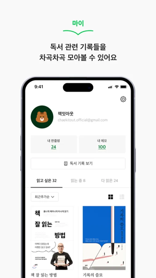 책잇아웃은 여러분의 독서를 더욱 편리하게 기록하기 위해 만들어졌어요.