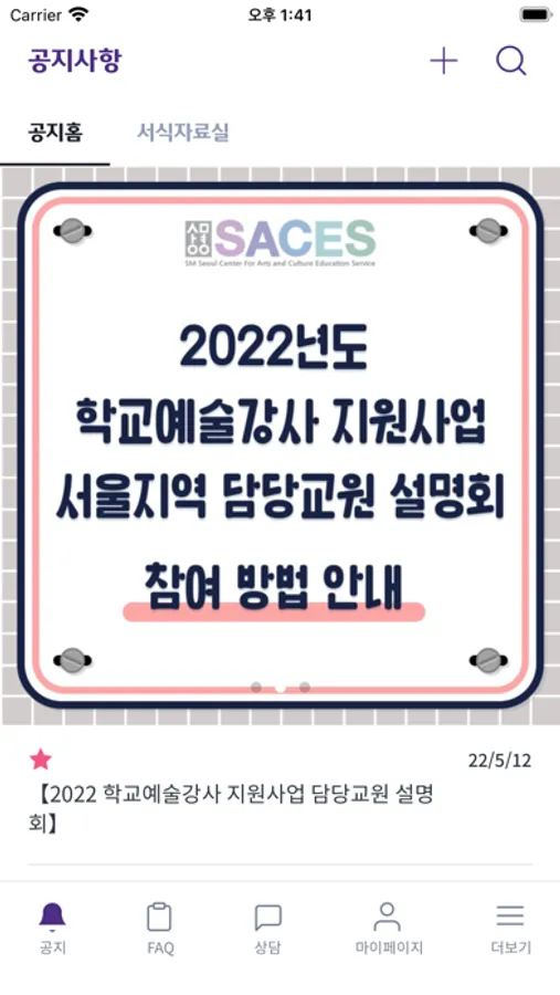 이제 SACES 앱에서 각종 공지확인과 채팅 상담이 가능합니다.